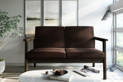 Каркас изделия выполнен из натурального и экологически чистого массива сосны. Мягкие подушки сиденья и приспинные подушки изготовлены из качественного высокоэластичного ППУ. На диване могут расположиться два взрослых человека, вес каждого до 120 кг.