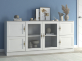Комод "Квартет 41МСт", ЛДСП, рамка МДФ, вставка стекло простое, белый