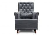 Ножки кресла изготовлены из массива березы, поэтому выдерживают хороший вес. Сиденье сделано толстым - отдыхать на нём вдвойне приятно. Чтобы создать ещё большее удобство, мы сделали широкие подлокотники. На них можно положить руки и наслаждаться отдыхом, просматривая любимое кино или читая книгу. Для придания стильных ноток, на спинке расположены пуговицы. Они создают дополнительный шарм мебели.