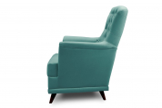 Ножки кресла изготовлены из массива березы, поэтому выдерживают хороший вес. Сиденье сделано толстым - отдыхать на нём вдвойне приятно. Чтобы создать ещё большее удобство, мы сделали широкие подлокотники. На них можно положить руки и наслаждаться отдыхом, просматривая любимое кино или читая книгу. Для придания стильных ноток, на спинке расположены пуговицы. Они создают дополнительный шарм мебели.