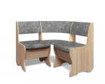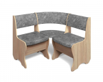 Набор мебели для кухни, включающий в себя угловую скамью, стол и два табурета. В угловой скамье под сиденьями расположены два ящика. Каркас ЛДСП. Покрытие верхней части столешницы стола - ЛДСП, кромка ПВХ - 1мм. В целях безопасности и придания лучшего эстетического вида углы столешницы закруглены. Современная комбинация цветов обивки и декора.