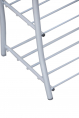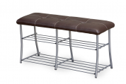 Оригинальная обувница выполнена из металлокаркаса. Мягкое сидение выполнено из качественной экокожи. На полках можно разместить порядка восьми пар обуви.