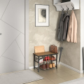 Небольшая тумба для обуви «Верда» на металлическом каркасе, с двумя открытыми полками и сидением ЛДСП.