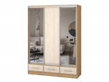 Шкаф-купе "Версаль" компоновка 2/ящики, 1 дверь ЛДСП, 2 двери зеркало, дуб золотистый-анкор светлый