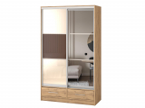 Шкаф-купе "Версаль" компоновка 2/ящики, 1 дверь стекло оракал, 1 дверь зеркало, дуб золотистый