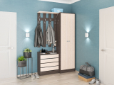 Если площадь Вашей прихожей позволяет Вам расположить двустворчатый шкаф, обратите внимание на модель из коллекции «Ямайка». Модуль оснащен евроштангой и двумя полками и идеален для хранения верхней одежды, обуви и коробок с аксессуарами. Несмотря на отличную вместимость, шкаф достаточно компактен.