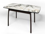 Стол обеденный раздвижной "Флорида" стекло с фотопечатью СМ-6, ЛДСП венге, опора массив изогнутая венге