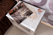 Новый модуль в коллекции «Brownie (Бровние)» 42 Тумба прикроватная c (к) брашированной столешницей выглядит просто, но в тоже время элегантно. Сочетание открытой и закрытой зон хранения, полки и ящика, - практичное решение, удобство которого ценят многие покупатели. В выдвижном ящичке на шариковых направляющих Вы с комфортом разместите те личные вещи, которые должны быть под рукой перед сном и после пробуждения. Покрытие брашированных поверхностей лаком защищает их от повреждения и продляет срок службы модуля.